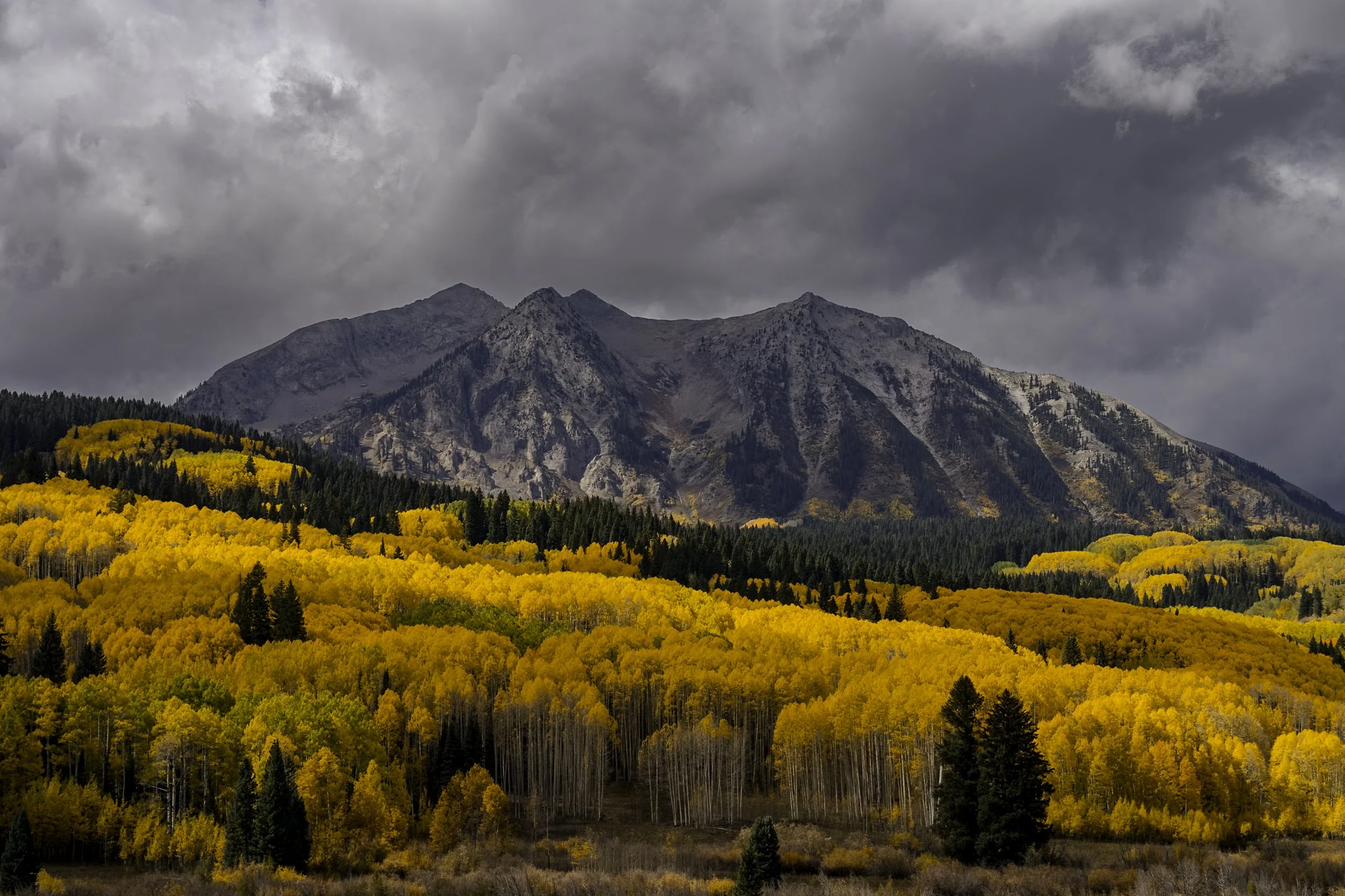 I first found this scene on a motorcycle. It was an absolute surprise, a highlight of what ended four days riding and camping around Colorado. Having lived in the state for 16 years at that point (the initial visit was the fall of 2014) I hadn’t really experienced a fall in the mountains since that initial year. A local motorcycle group had organized a multi-day ride through the high country to take in the fall colors, and even without “real” camera this was an adventure I didn’t want to pass up on.
